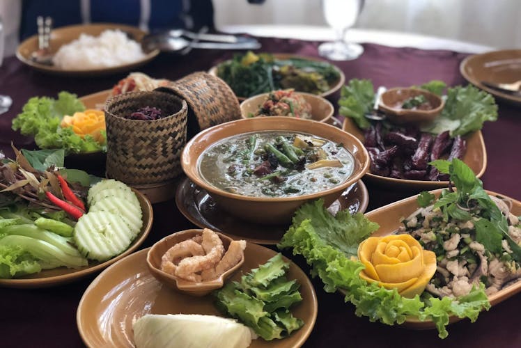 Laos mutfağı, Tayland ve Vietnam mutfağından izler taşısa da kendi otantik çizgisini korumayı başarmıştır. “Larb” olarak bilinen baharatlı kıyma salatası, yapışkan pirinçle servis edilen geleneksel bir yemektir. “Tam Mak Hoong” (Laos usulü papaya salatası) ise bölgenin favori sokak lezzetlerinden biridir. Ayrıca nehir balıkları, tropikal meyveler ve taze otlarla yapılan yemekler mutfağın temel taşlarını oluşturur.