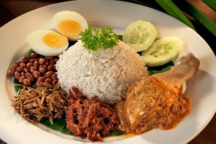 Nasi Lemak: Hindistancevizi sütüyle pişirilmiş pirinç, acılı sambal sos, haşlanmış yumurta, kızarmış ançüez ve yer fıstığıyla servis edilen Malezya’nın ulusal yemeğidir.