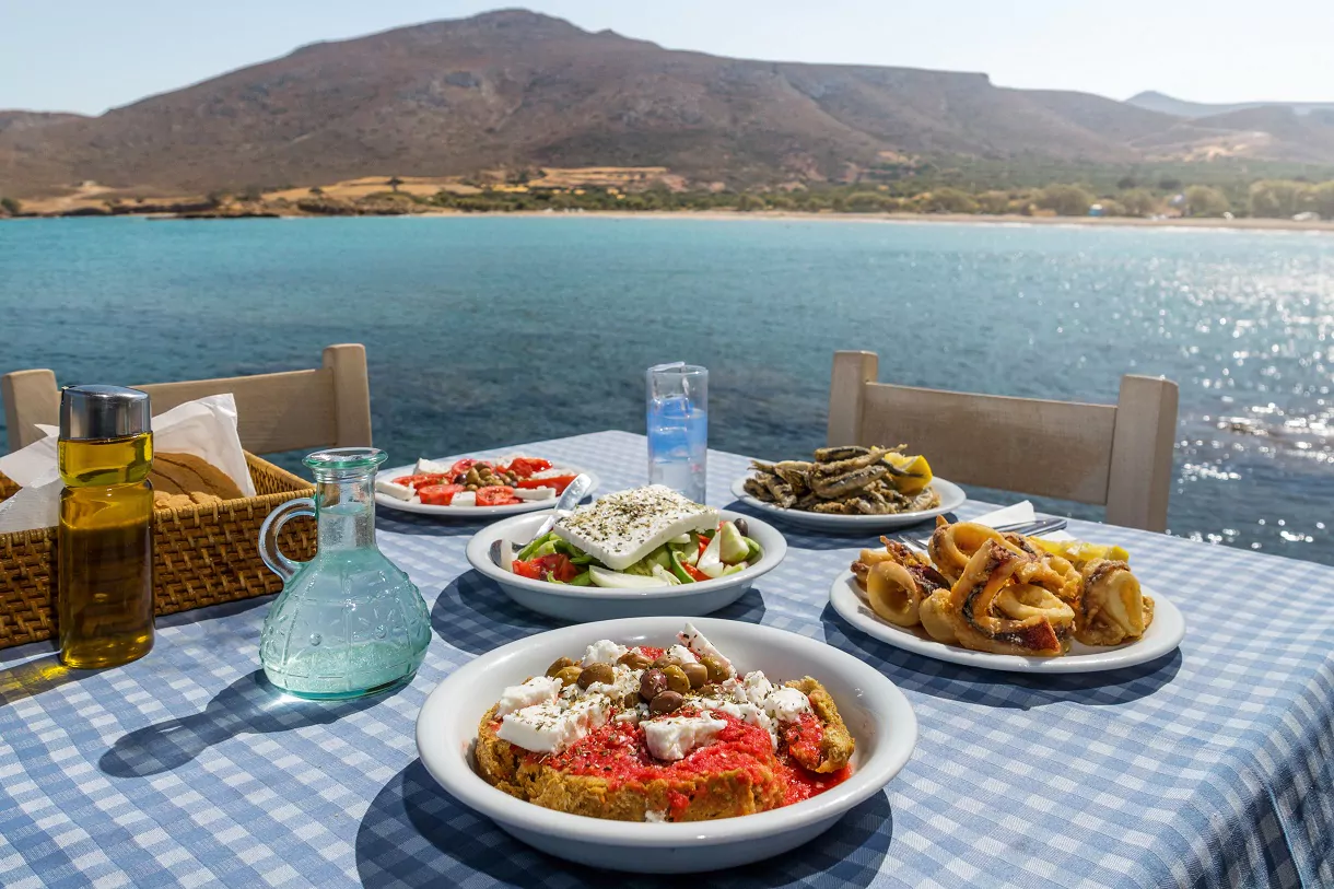 Ülkenin simgelerinden biri de geleneksel Yunan salatasıdır. Feta peyniri, taze domates, salatalık ve zeytinle hazırlanan bu salata, ferahlatıcı bir lezzet sunar. Yunan mutfağının olmazsa olmazlarından biri de Girit mutfağından çıkan zeytinyağlı dolmalar ve peynir çeşitleridir.